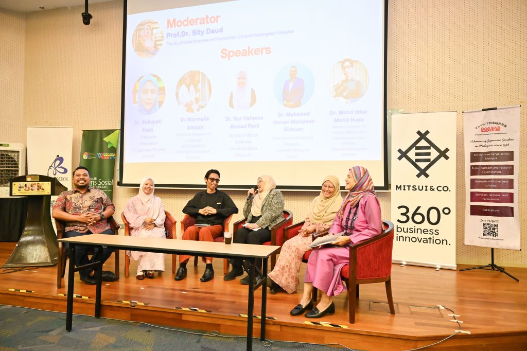 Moving on to the academician’s roundtable, an esteemed panel of senior lecturers took the stage next to share the current situation on Japanese Studies, the integration of Japanese Language in Japanese Studies, and collaborations with Japanese scholars to extend the study. They also answered the student’s questions by encouraging them to attend programmes by The Japan Foundation, Kuala Lumpur and other opportunities.